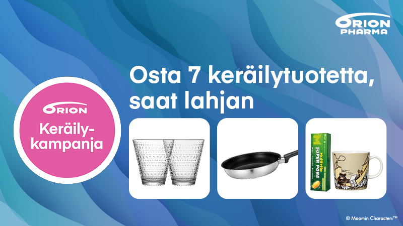 Kun tilaat verkkokaupasta seitsemän Orionin keräilykampanjaan kuuluvaa tuotetta, saat valitsemasi lahjan heti