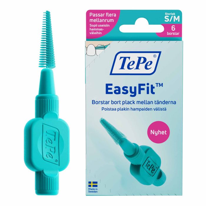 TePe EasyFit™ tar effektivt bort plack mellan tänderna och hjälper till att förebygga tandköttsinflammation, karies och dålig andedräkt. Den är utvecklad i samarbete med tandvårdsexperter för högsta kvalitet. Välj mellan två storlekar: Small/Medium eller Medium/Large.
